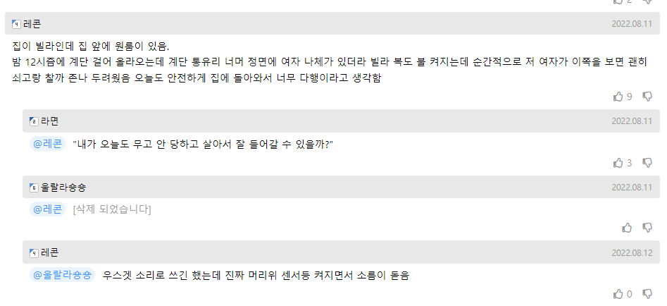 앞건물 위층에서 아악….. 여자 비명소리가 나서 봤더니 저를 보고있더라고요.