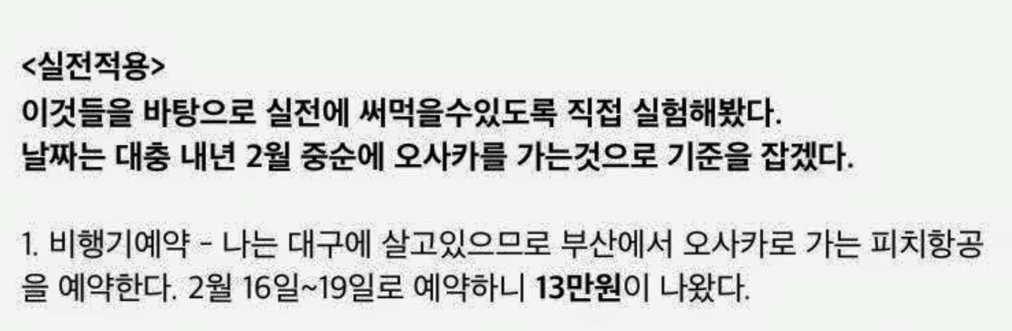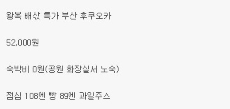A씨는 앞서 후쿠오카를 가면서 썼던 경비를 나열하며 글을 작성했다.