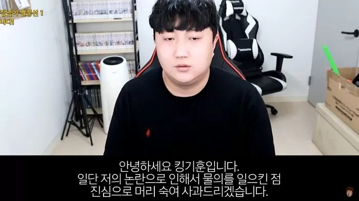 지난 9일 킹기훈은 아프리카TV에서 약 18분 가량 생방송을 진행하면서 “먼저 저의 논란으로 물의를 일으켜 진심으로 머리 숙여 사과드리겠다”라고 말문을 열었다.