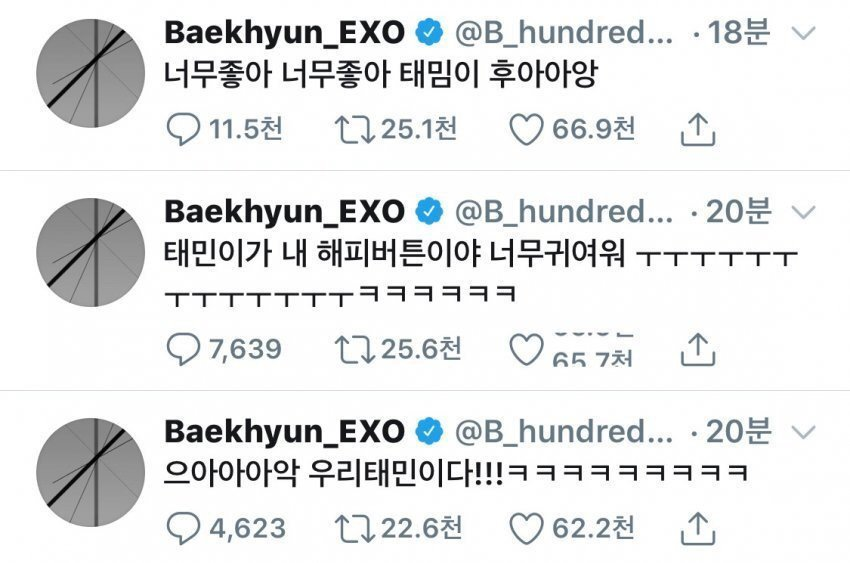 또한 백현은 샤이니 태민을 언급하며 ‘해피 버튼’이라 적었는데, 이는 태연의 노래 ‘해피’를 노린 것이 아니냐는 의견도 나왔다.