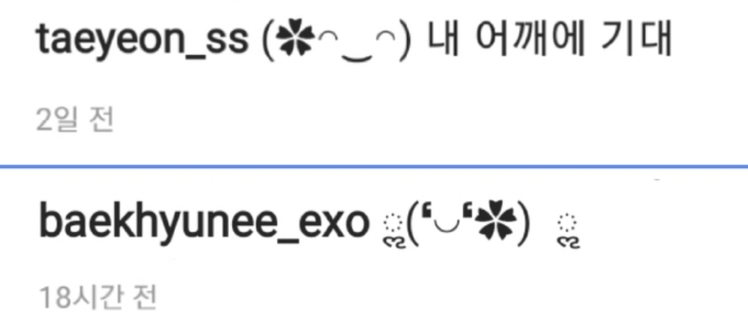 무엇보다도 태연과 백현이 하루 차이로 얼굴에 꽃 이모티콘을 마주보는 방향으로 올리며 주목 받았다.