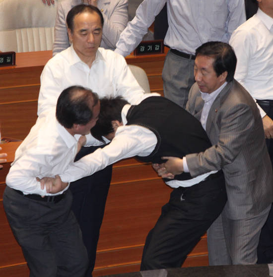 몸싸움은 서울 서초구 서초동에 있는 햄버거 프랜차이즈 가게 부근에서 일어났다.