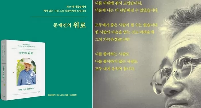 지난 10일 문 전 대통령은 미르북컴퍼니 자회사 더휴먼을 통해 ‘문재인의 위로’를 출간했는데, 해당 책은 문 전 대통령이 민주통합당 대선 후보 시절인 2012년 8월 선보인 포토에세이 ‘문재인이 드립니다’의 개정판이다.