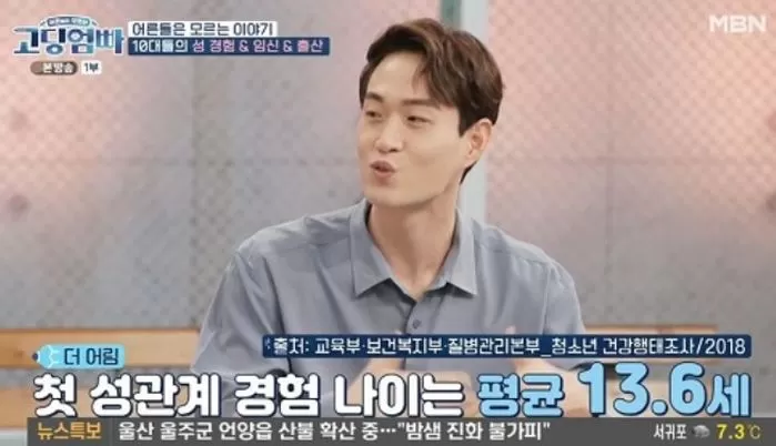 이시훈 강사는 “보통 출산하기 전에 경험을 하는데 10살에서 11살에 경험을 하고 출산한 경우도 있다”라면서 우리나라 청소년의 관계 시작 나이에 대해선 “평균 13.6세”라고 말했다.