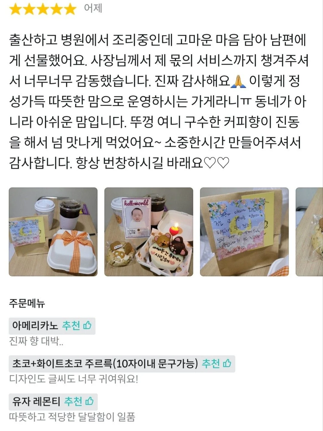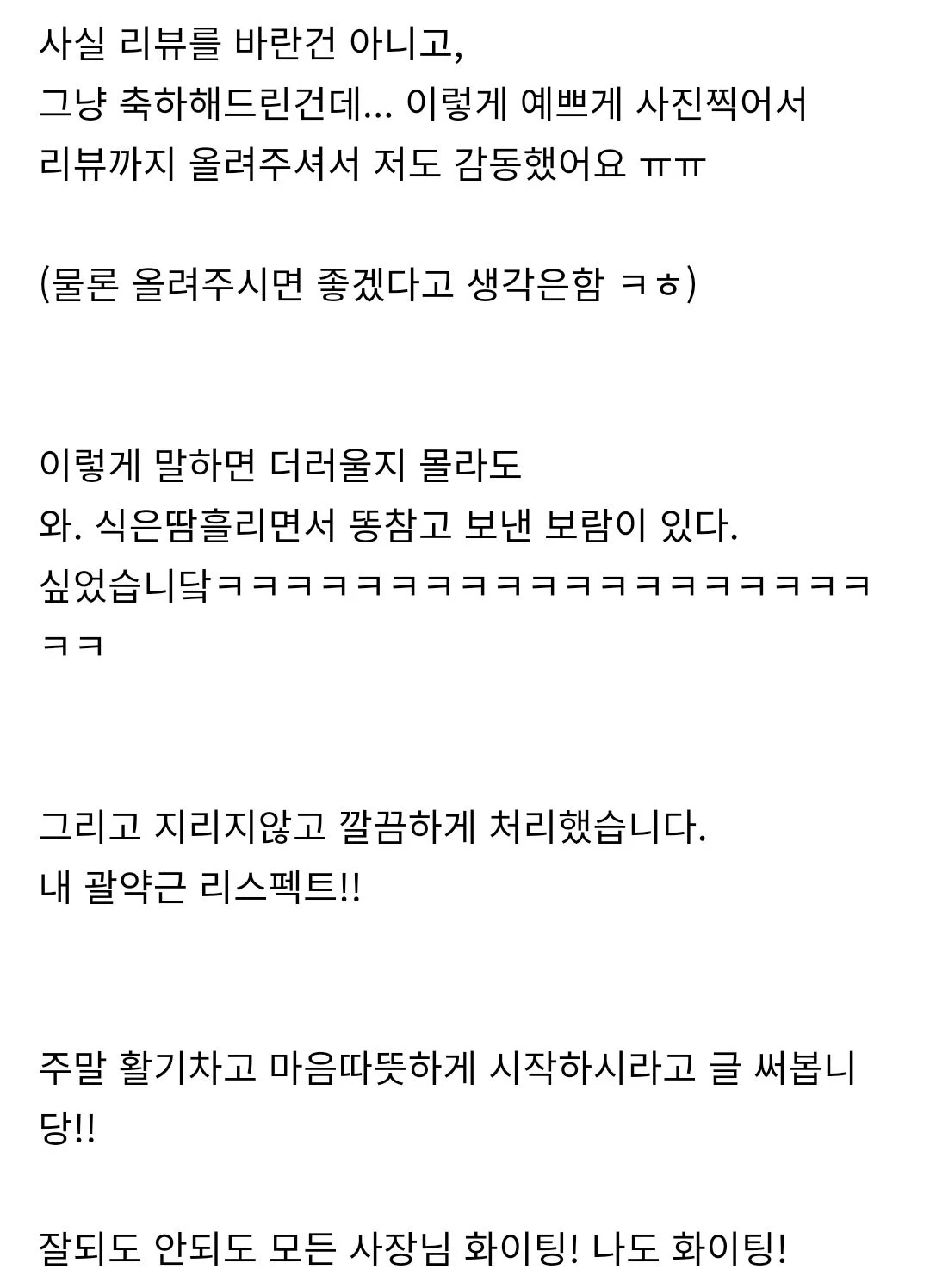 A씨의 예상대로 꽤나 급한 주문이었고 주문을 한 손님은 A씨의 정성스런 요리에 감동을 받았는지 칭찬이 가득한 배달리뷰를 적어줬다.