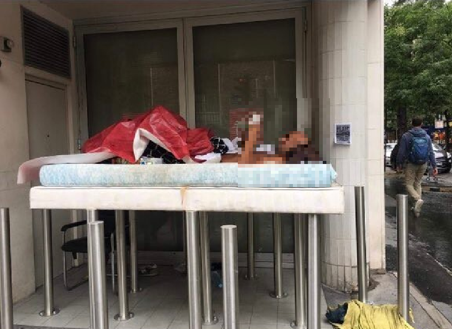 그러나 노숙자는 사장의 의도와 달리 새로운 방법을 찾아냈다. 그는 차단봉 위에 침대 매트리스를 올려 편안한 잠자리를 만들었다.
