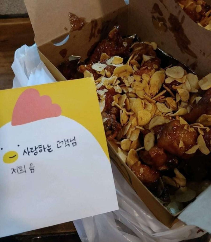 공개된 사진 속에는 어느 치킨집 사장님의 귀여운 실수가 돋보였다.