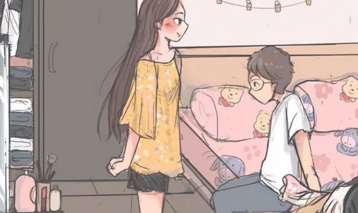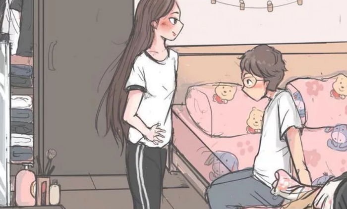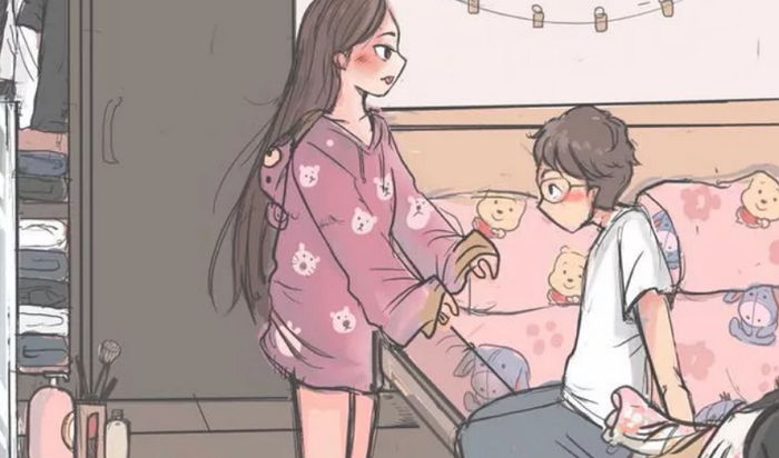 함께 밤을 보낸 여자친구와 남자친구의 상반되는 아침 맞이 풍경이 사람들의 공감을 불러일으켰다.