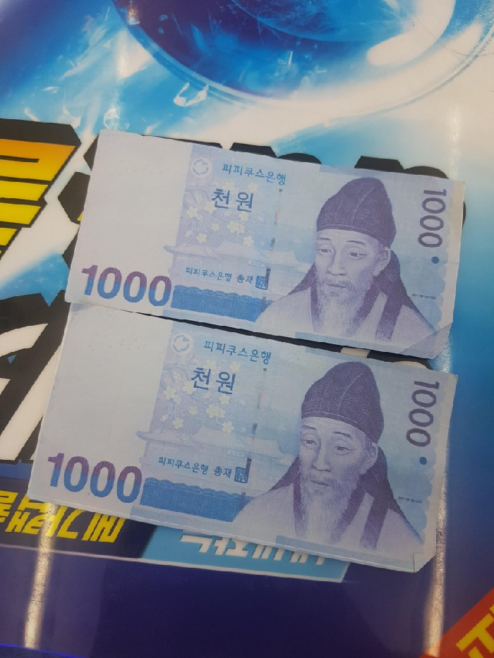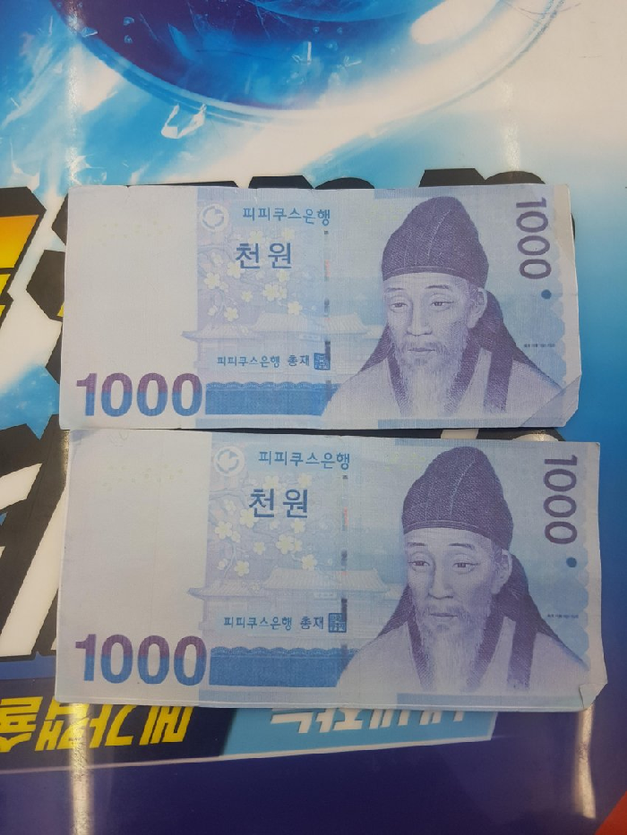 위조지폐에는 ‘한국은행’, ‘한국은행 총재’라는 문구 대신 ‘피피쿠스은행’, ‘피피쿠스 은행 총재’라고 적혀있다.