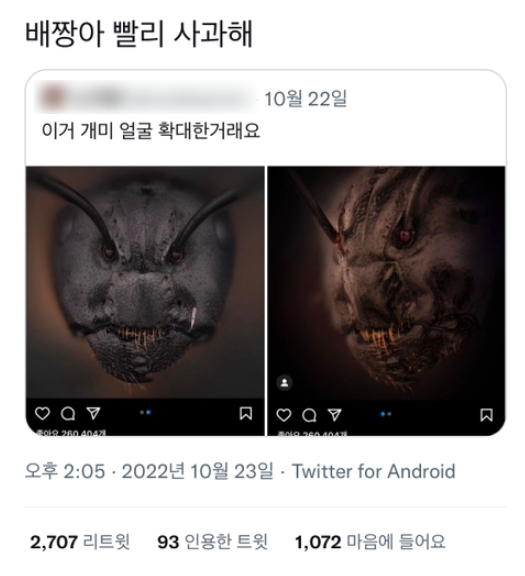 개미 얼굴 사진을 확대했더니 벌어진 대참사(+사진, 댓글 반응)