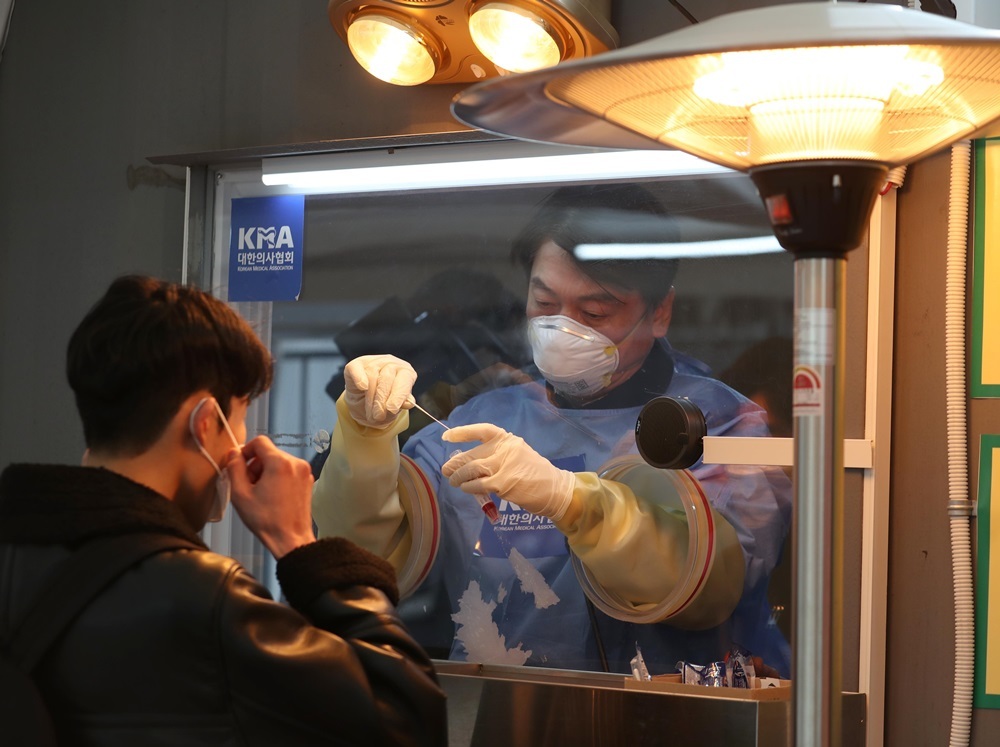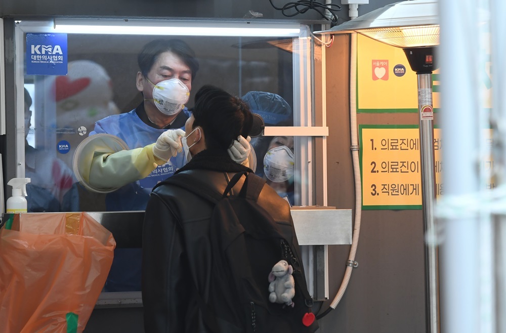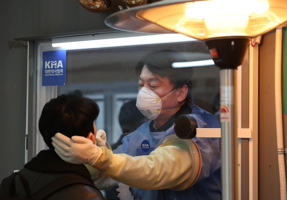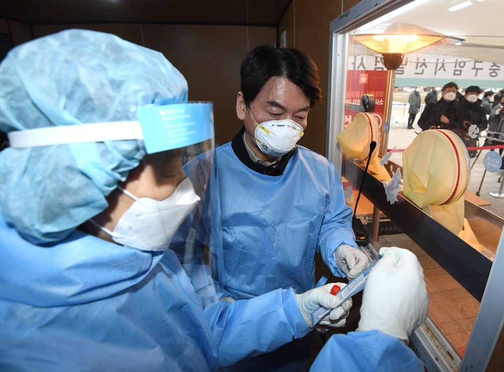 안철수 대표는 이날 오전 서울광장 임시 선별검사소를 방문했고, 파란색 방호복을 입고 코로나19 진단검사를 받으러 온 시민들의 검체를 직접 채취했다.