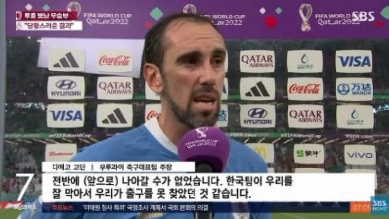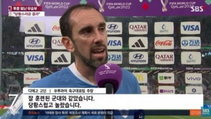 지난 26일 엑스포츠뉴스에 따르면 SBS ‘모닝와이드’는 ‘2022 카타르월드컵’ 우루과이 경기 후 주장 디에고 고딘의 인터뷰 영상을 최근 공개했다.