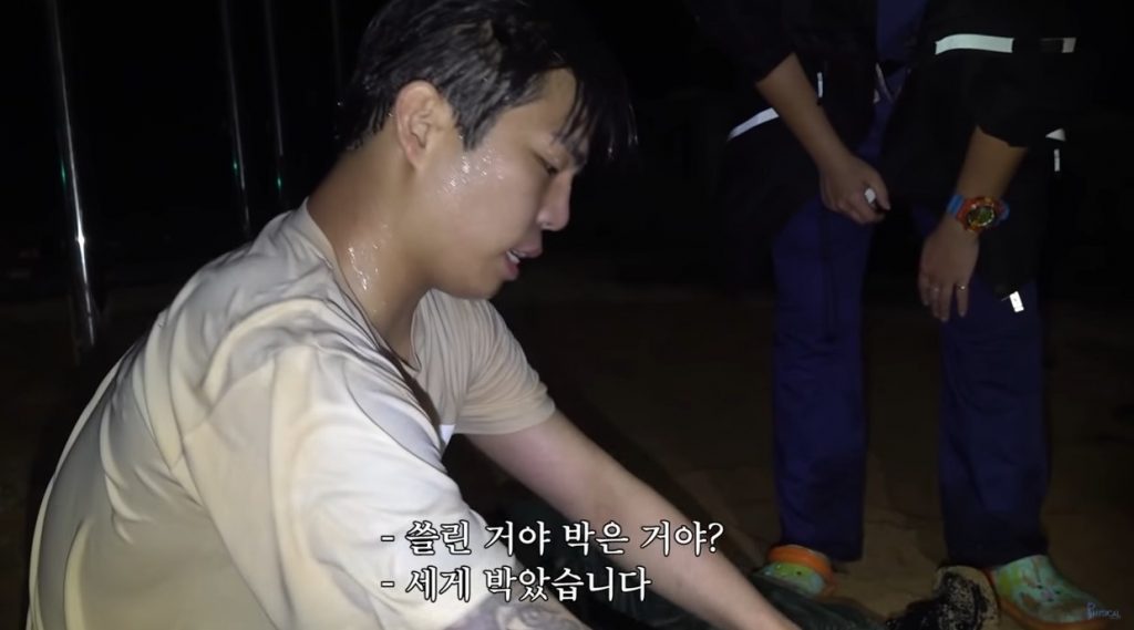 가장 먼저 퇴교를 한 유튜버 조재원은 기둥을 받치는 물체에 찧은 정강이가 점점 부어오르며 훈련을 포기하고 말았다.