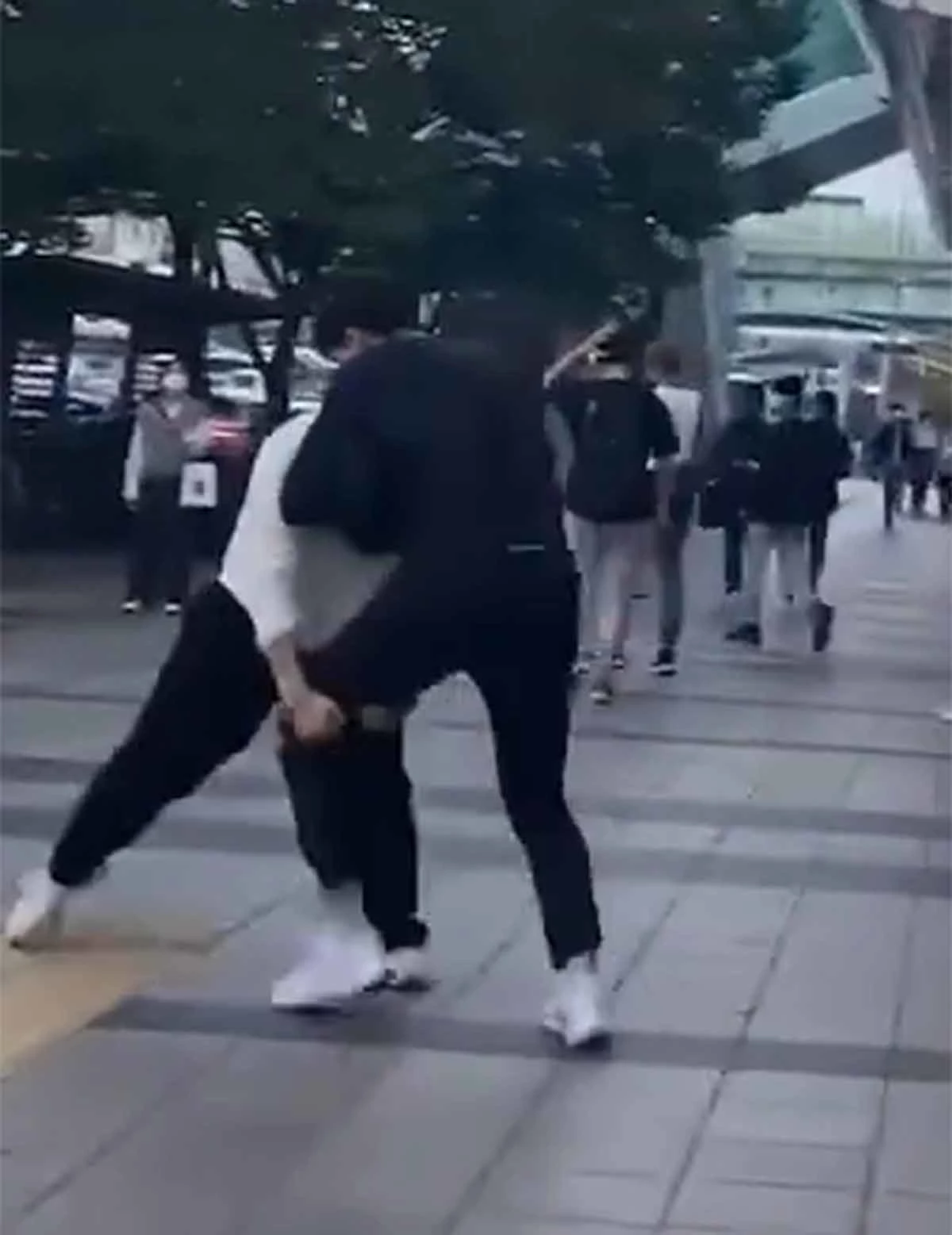 격투기를 배운 듯한 두 남성이 경기 수원역 앞에서 싸우는 모습을 담은 영상이 급속도로 퍼져 화제이다.
