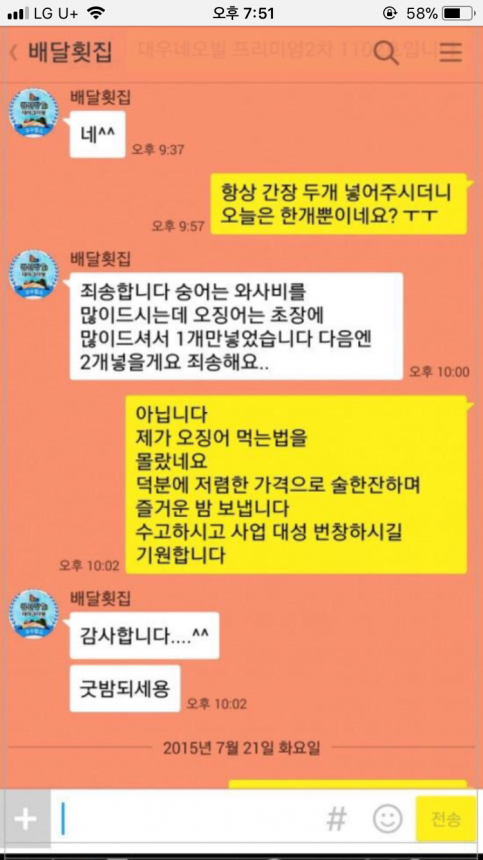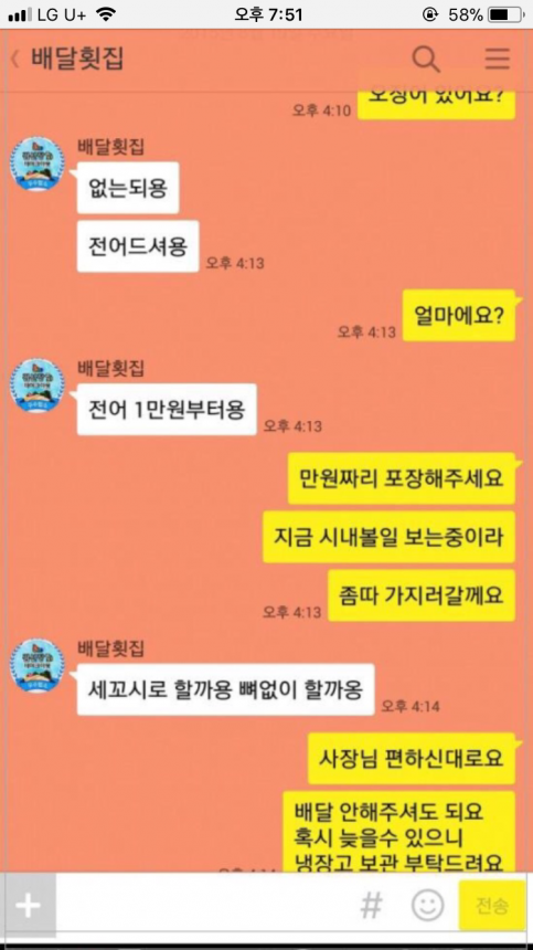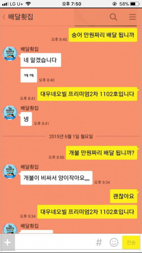 소식을 확인한 누리꾼들은 “이것만 보면 숭어회 먹고 싶어”, “저 카톡은 봐도봐도 재밌다”, “배민에 사장님이 사진 첨부해놓으신 거 너무 웃겨” 등의 반응을 보였다.