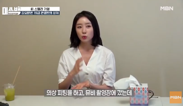 해당 영상에는 그룹 ‘스텔라’ 출신 멤버 가영이 출연했다. 가영은 “‘떨려요’라는 곡을 받고 의상 피팅을 하고 M/V 촬영장에 갔는데 갑자기 수영복을 입으라고 하더라”고 말했다.