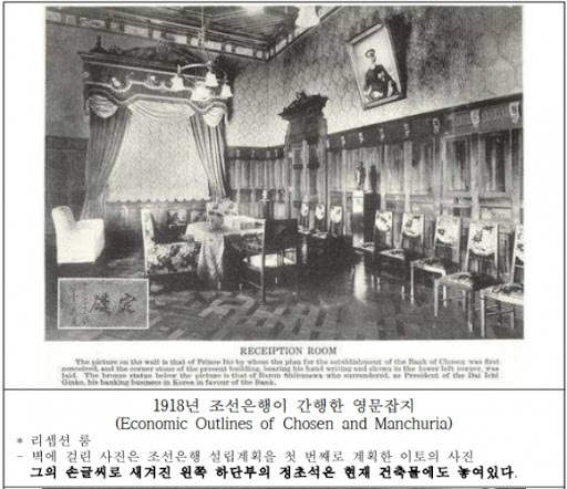미국 버클리 캘리포니아대학 도서관이 소장중인 간행물 6쪽에는 ‘이 건물의 정초석은 이토 공작의 친필로 만들어졌다’는 설명이 적혀 있었다.