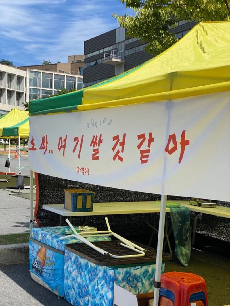 현수막에는 “오빠… 여기 (가격이) 쌀 것 같아”라는 한 문장이 적혀 있다.