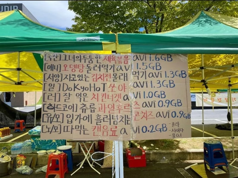 또 안주 메뉴판에는 ▲[국산] 그녀의 두툼한 제육볶음 avi 1.6GB ▲[애니] 오뎅탕 돌려먹기 avi 1.5GB ▲[서양] 자고 있는 김치전 몰래 먹기 avi 1.3GB 등 다소 선정적인 메뉴 이름을 적어놨다.