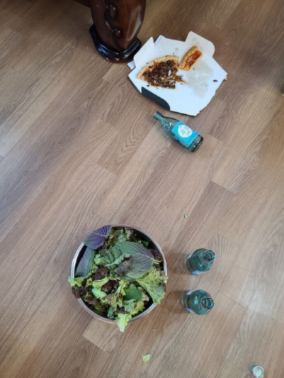 주방과 식탁 물론 거실까지 음식물 쓰레기가 놓여있었다.