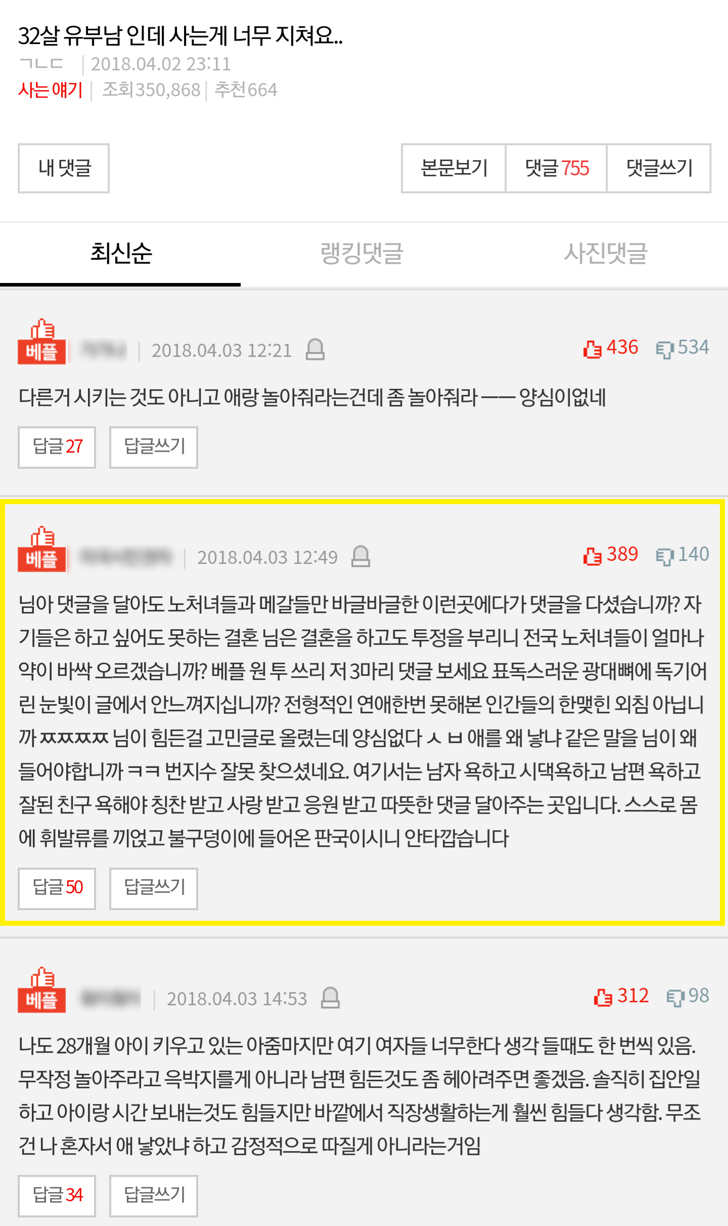 한편 해당 댓글은 화제를 모은 이후 ‘좋아요’ 를 많이 받으며 베플로 승격됐다.