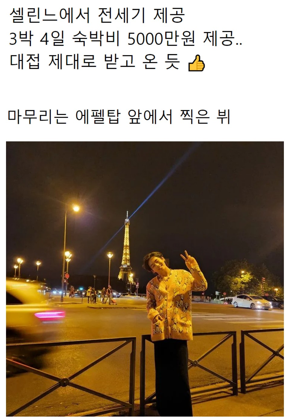 A씨는 “이번 셀린느 패션쇼 초청 받아 갔을 때,” 라고 전했다.