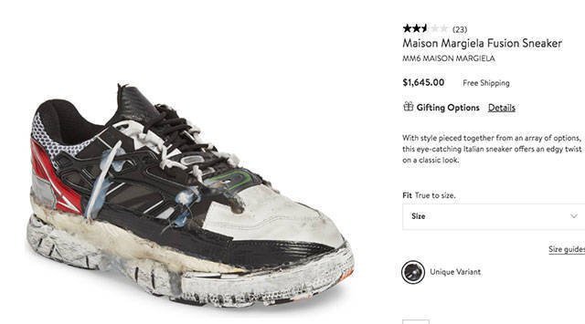 메종 마르지엘라에서 출시한 퓨전 스니커즈는 1645달러(한화 약184만 원)을 자랑한다.