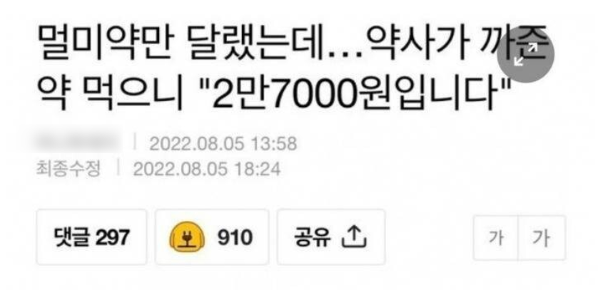 그러자 약사는 “약을 까서 주는 것은 문제없다. 다른 사람은 이 가격에 항의하지 않는데 왜 그러냐”는 식으로 A씨를 되려 나무랐다고 한다.