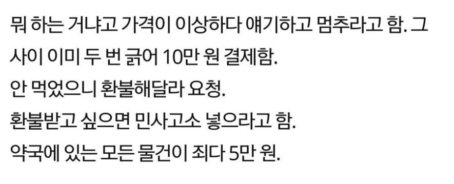 A씨가 “가격을 알지 못한 상태에서 왜 약을 까서 줬냐”고 계속 추궁하자, 약사는 그제야 전부 환불해주겠다고 했다고 한다.