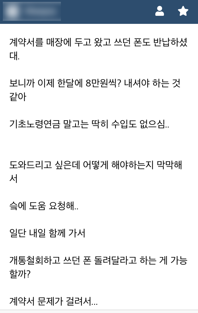 이어 “계약서를 매장에 두고 왔고 쓰던 폰도 반납하셨다고 한다.