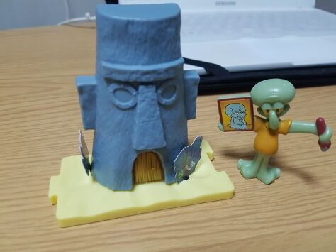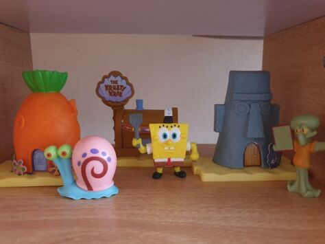 스폰지밥 특유의 캐릭터들 옆에 각자가 사는 집들이 세워져 있어 귀여움을 더한다.