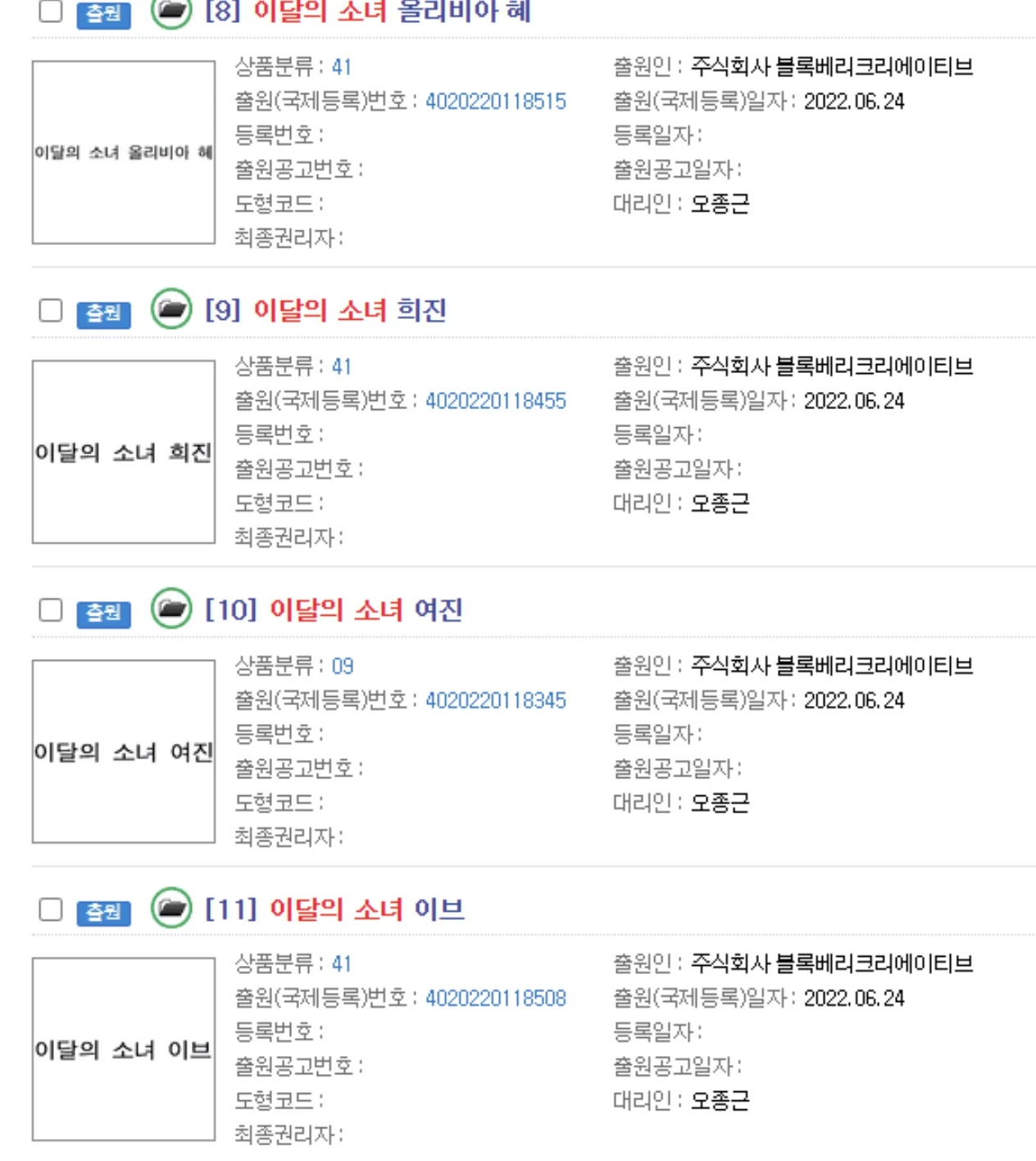 블록베리 측은 지난 2월 특허청에 ‘이달의 소녀 츄’, ‘LOONA’s Chuu’ 등의 상표권을 등록했고 이어 4월에는 다른 멤버들의 이름도 상표권을 등록한 바 있다고 한다.