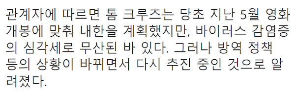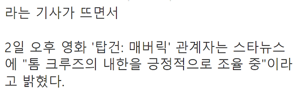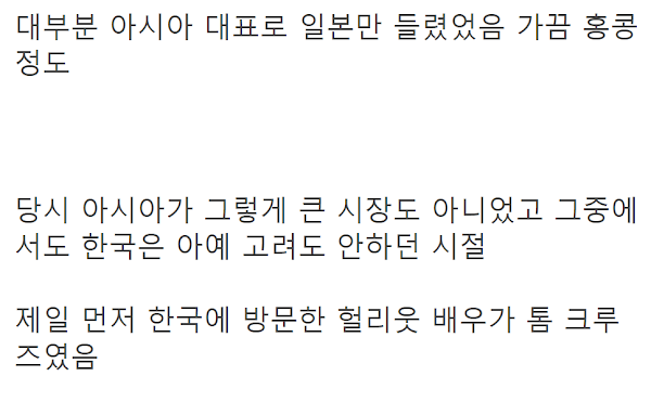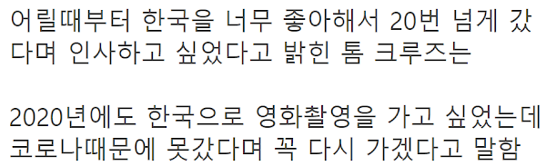 톰 크루즈가 한국에 진심이란 소리 듣는 이유 톰 크루즈가 한국에 진심이란 소리 듣는 이유