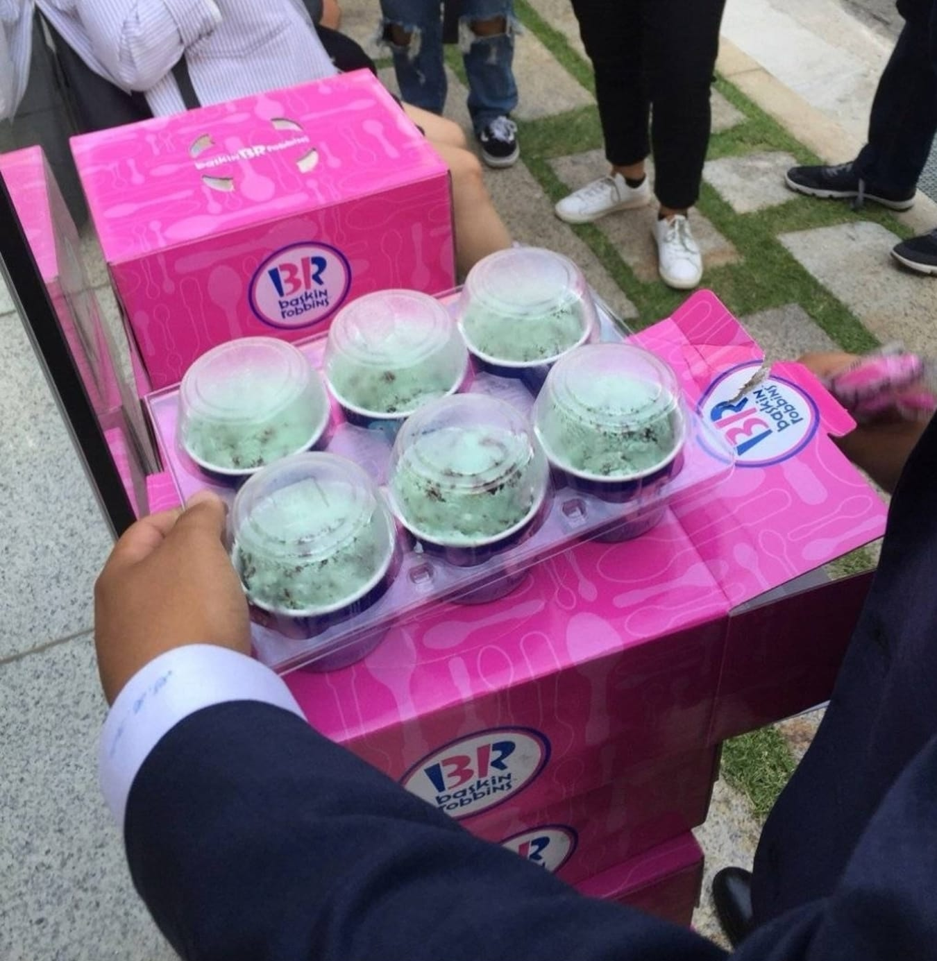 다들 사진을 찍으며 상자 속 모든 아이스크림이 민트 초코임을 인증하고 있다.