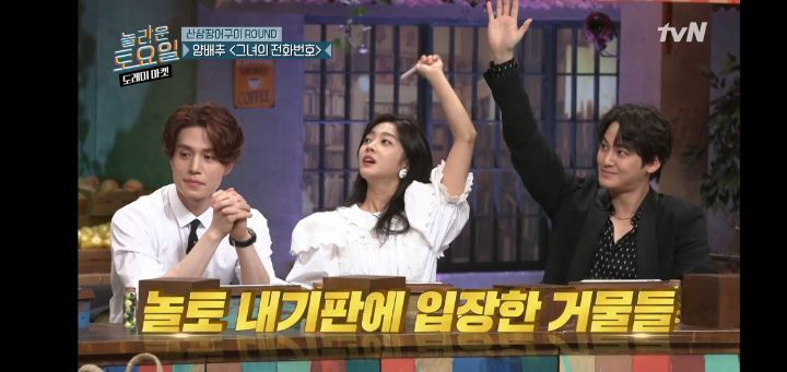 이동욱은 ‘구미호뎐’ 드라마 속에서 “‘유퀴즈’와 ‘놀라운 토요일’ 하나 둘 셋?”이라며 양자 택일을 했다.