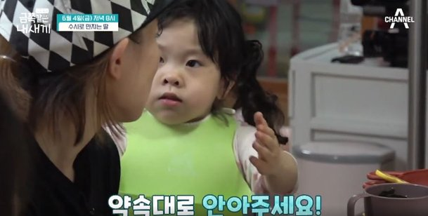 이번엔 금쪽이가 안아달라고 손을 뻗자, 엄마는 “밥을 잘 먹으면 안아주겠다”고 제안했다.