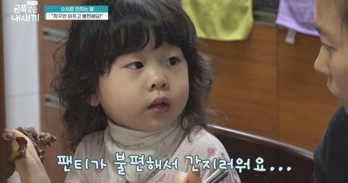 잠시 후 금쪽이는 “팬티가 불편해서 간지럽다”며 생식기로 손을 가져갔다.