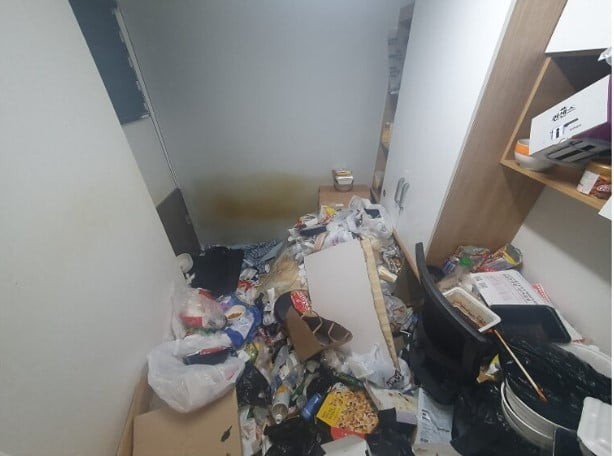 이어 “놀라운 건 나가기 전까지 이 방에서 먹고 자고 했다는 것”이라며 “방에서 나온 쓰레기양이 엄청났는데 냄새 때문에 어떻게 손을 대야 할지 모르겠다”고 말했다.