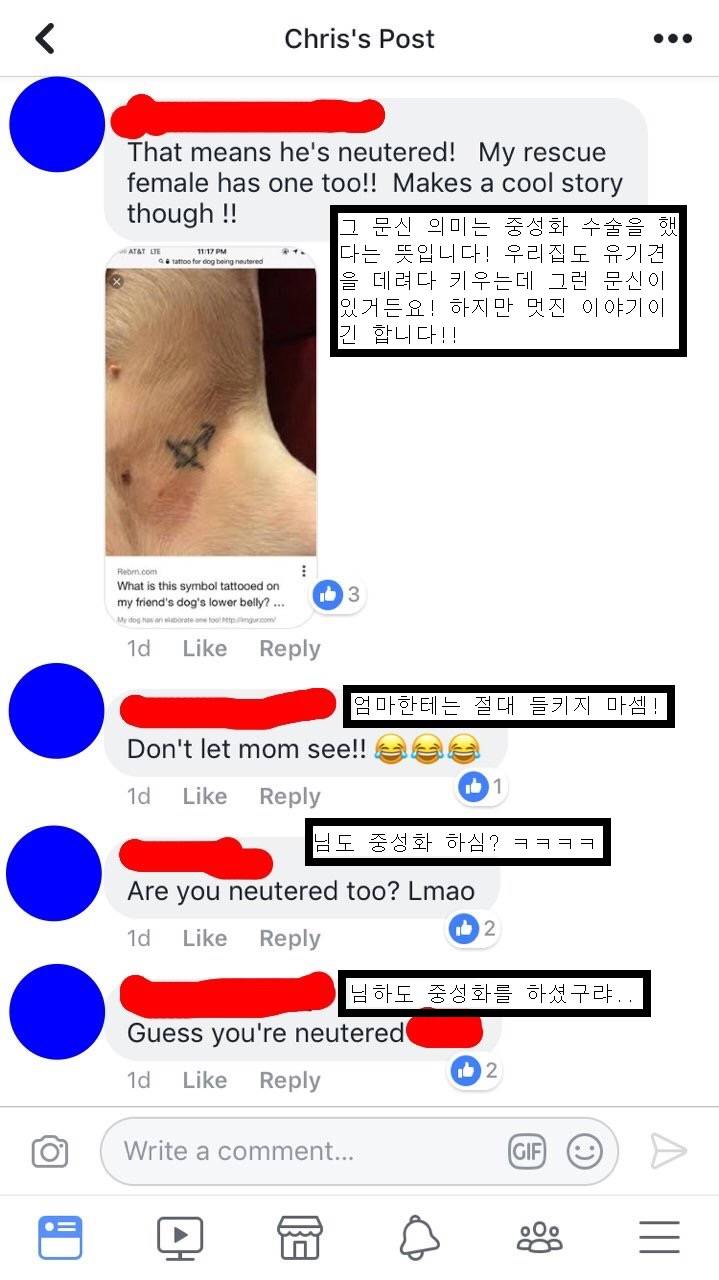 네티즌들은 “괜찮아 사람도 중성화 할 수도 있지!” “주인분 힘내세요” “강아지도 동료라고 생각해서 더 뜨겁게 안아줄거에요” “ㅋㅋㅋㅋ아 멋진 문신이라고 위로해주는 게 더 욱곀ㅋㅋㅋㅋㅋ” 등등의 반응을 보였다.