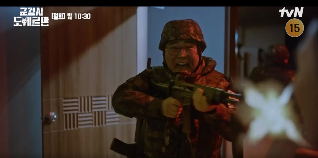 지난 18일 방송된 tvN 드라마 ‘군검사 도베르만’에서는 마 병장(장영현 분)을 중심으로 한 군대 내 선임들의 가혹행위에 시달리던 편 일병이 결국 이를 참지 못하고 총기를 난사하는 장면이 그려졌다.