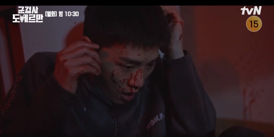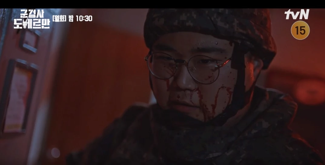 tvN ‘군검사 도베르만’ 편상호 일병(김요한 분)이 결국 정신을 놓고 총기 난사를 했다.