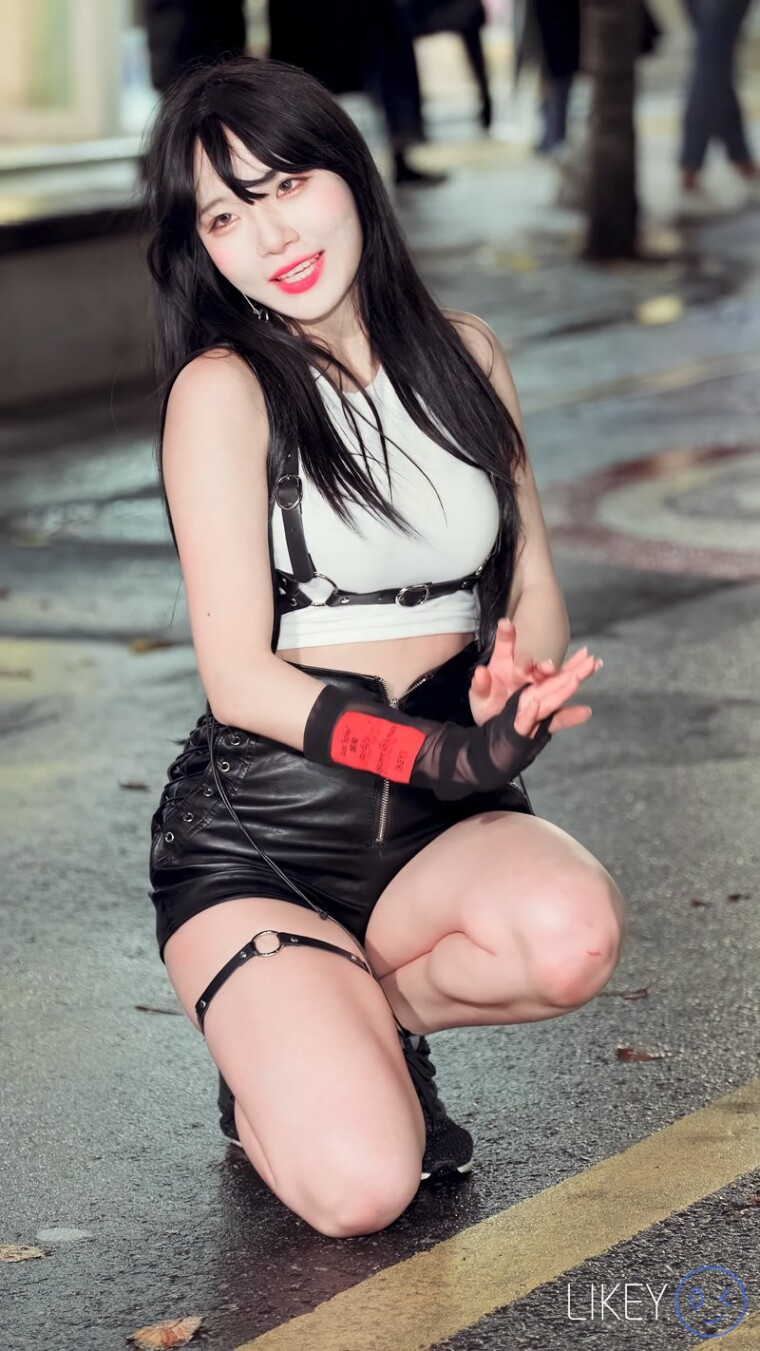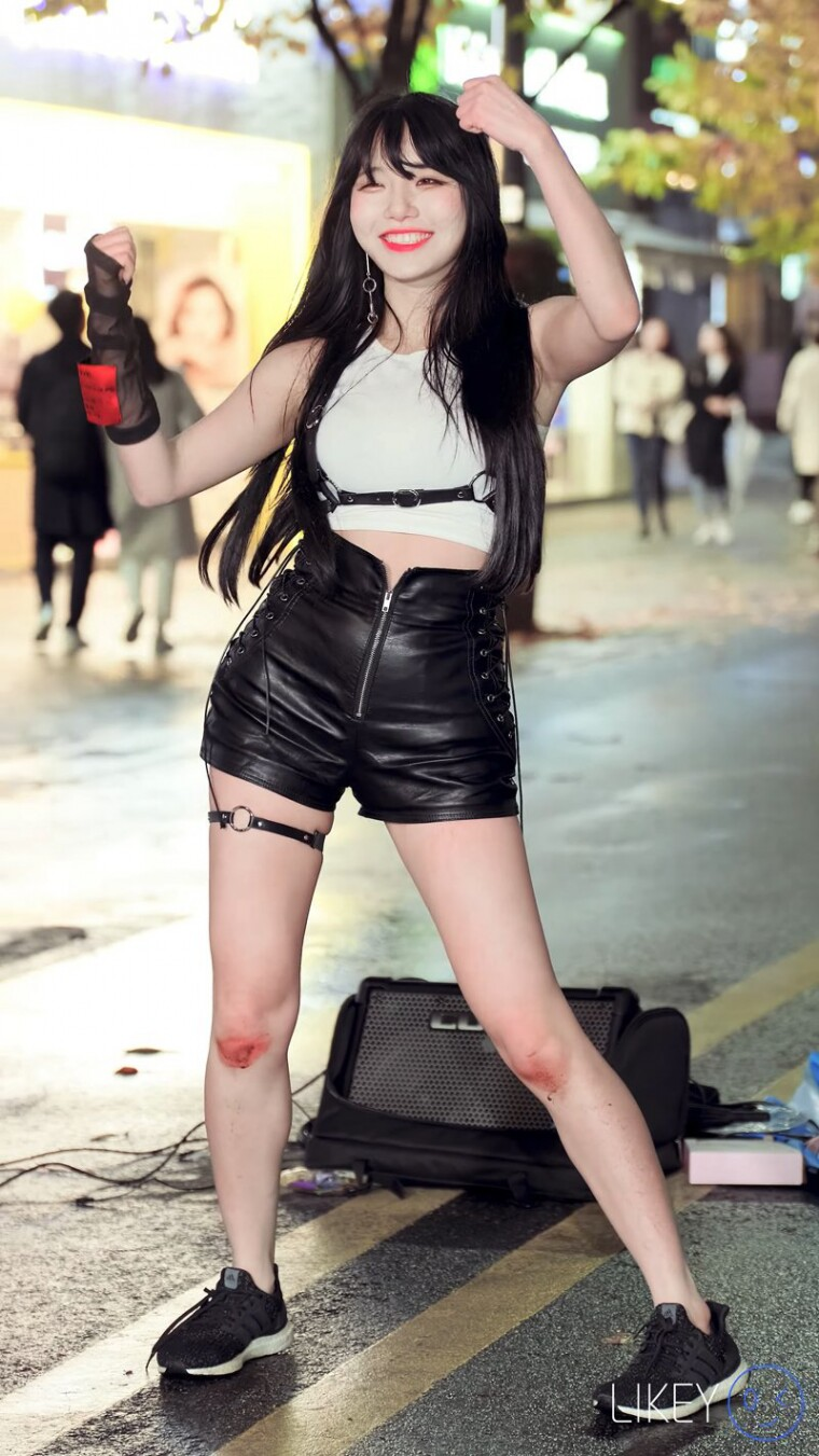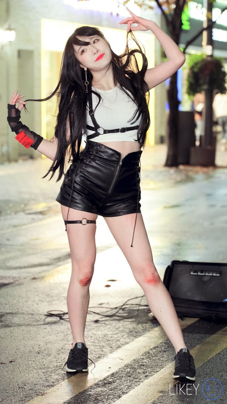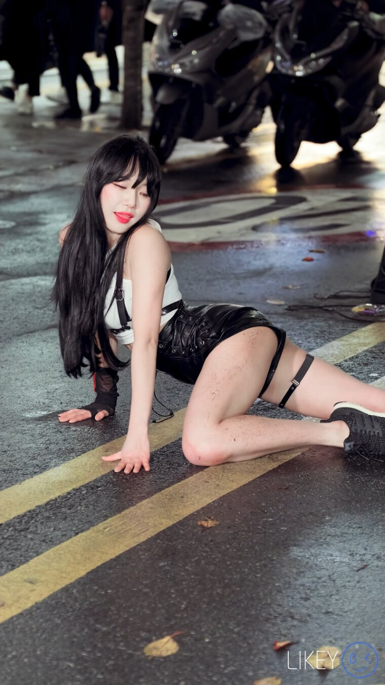 공개된 사진 속에선 얇은 민소매에 짧은 반바지를 입고 길거리에서 춤을 추는 수련수련의 모습을 확인할 수 있다.