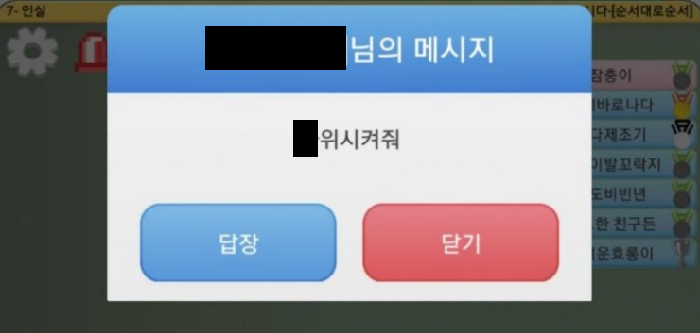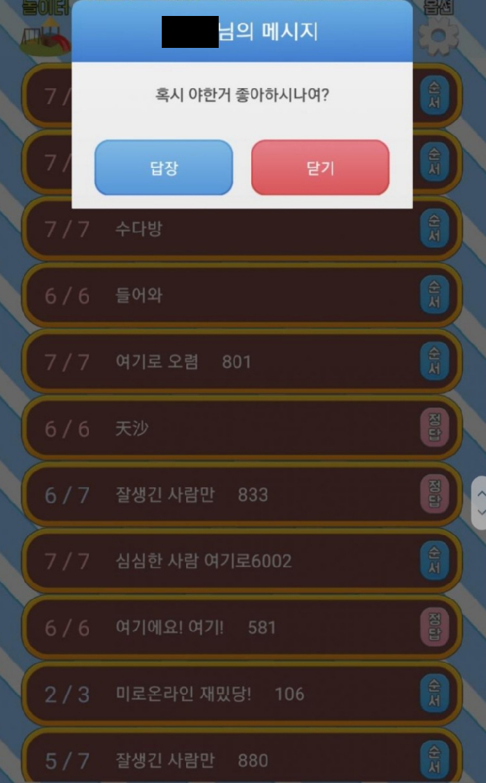 A씨가 게임 앱에 접속하자 한 네티즌이 “몇 살이세요?”, “혹시 야한 거 좋아하세요?”, “야한 거 하실래요?” 등의 내용이 담긴 메시지를 보냈다. 또한 다른 네티즌은 “나 지금 엄청 발X난 것 같은데 X아줄 수 있어?”, “자X시켜줘”등의 성희롱 메시지를 보냈다.