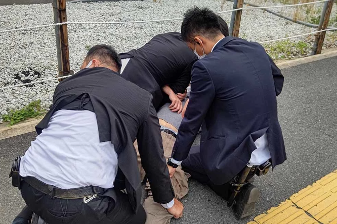 구급대는 11시37분 사건 현장에 도착하였다. 야마가미 테쓰오가 11시 41분에 체포되는 한편, 11시 54분경 아베 전 총리가 구급차로 이송됐다.