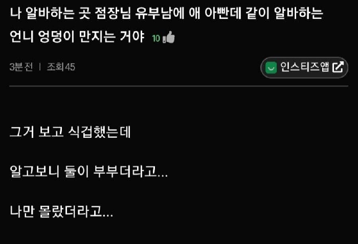 점장과 알바생 언니는 부부였다. 이를 몰랐던 A씨는 두 사람을 보고 오해(?)한 것.