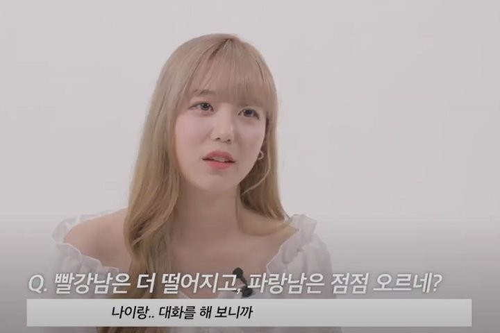 여성은 “빨강남은 뽀뽀를 대충했다. 반대로 파랑남은 뽀뽀를 하며 볼에 넓은 면적이 닿았다”고 설명했다.