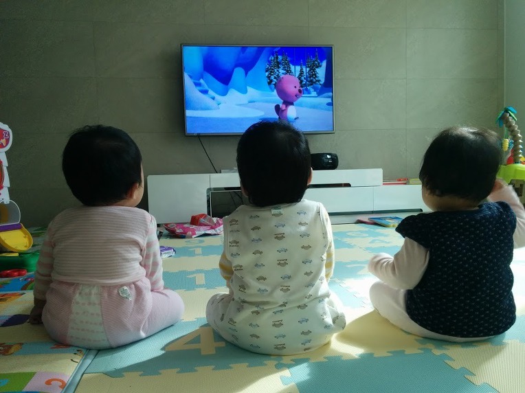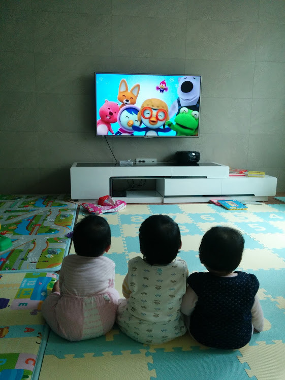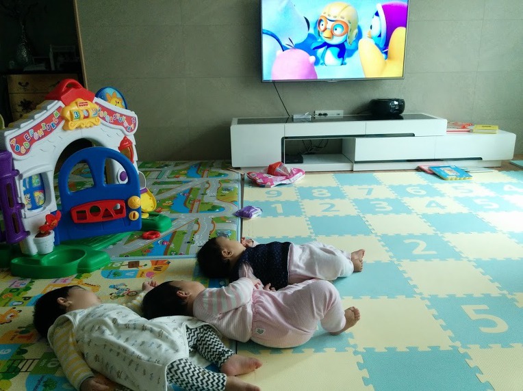 아이들은 누운 그대로 움직이지 않고 고개만 돌려 뽀로로를 시청하고 있었다.
