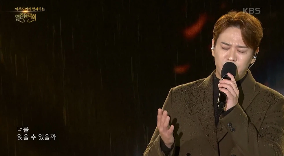 무대를 마친 그는 “궂은 날씨에도 불구하고 인사드리게 돼 기쁘다”고 반갑게 인사하며, 자신의 솔로곡인 ‘어떻게 널 잊어’를 선곡했다.