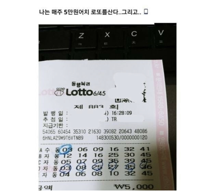 매주 5만 원 어치의 로또를 사는 한 누리꾼.