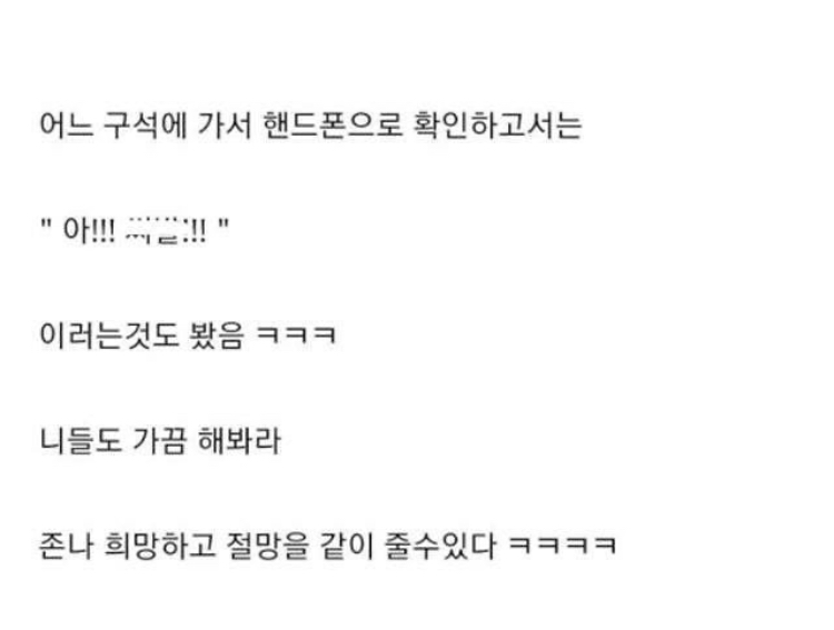 어느 구석에 가서 핸드폰으로 복권을 확인해 본 그 사람은 “아!!! ㅅㅂ!!” 하며 욕설을 내뱉었다고 했다.